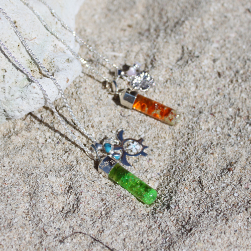 沖縄の琉球ガラスと星の砂が入ってます。1つ1つが職人の手作業で作られています。