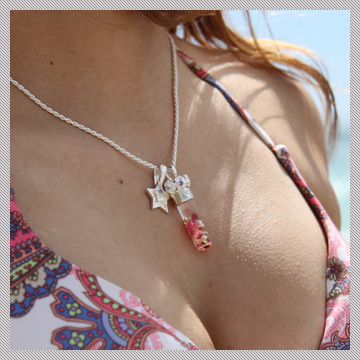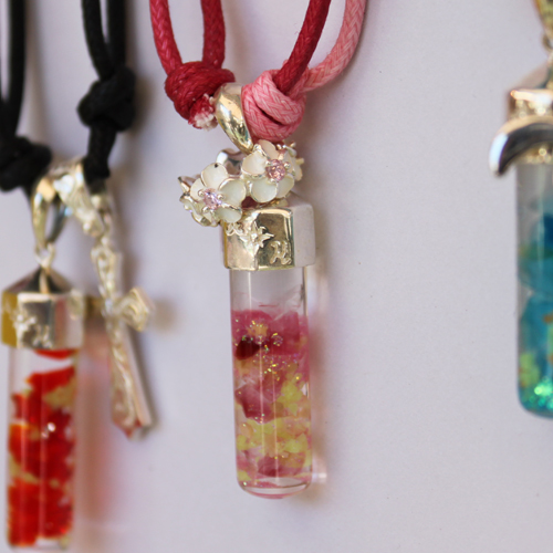 沖縄の琉球ガラスと星の砂が入ってます。1つ1つが職人の手作業で作られています。