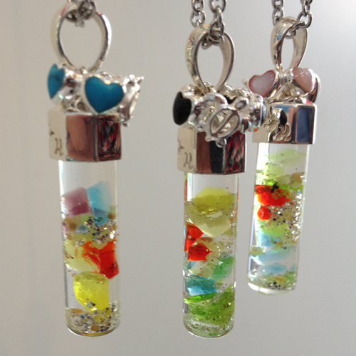 沖縄の琉球ガラスと星の砂が入ってます。1つ1つが職人の手作業で作られています。